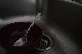 The husband added yet another empty drinks vessel to the teetering three day pile of ignorance.